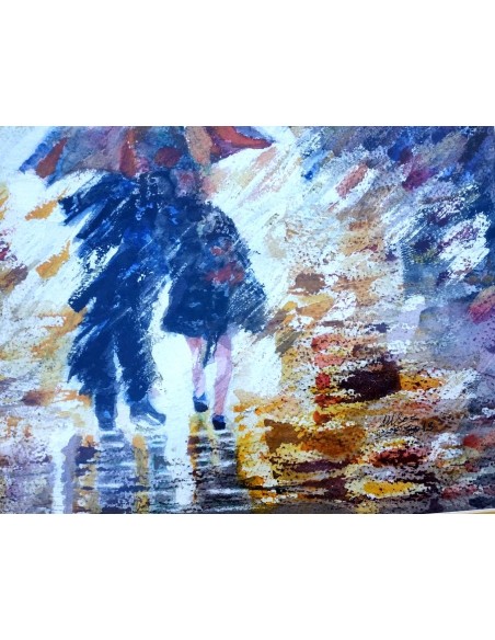 PASEANDO CON LLUVIA Y VIENTO M.SOS ACUARELA