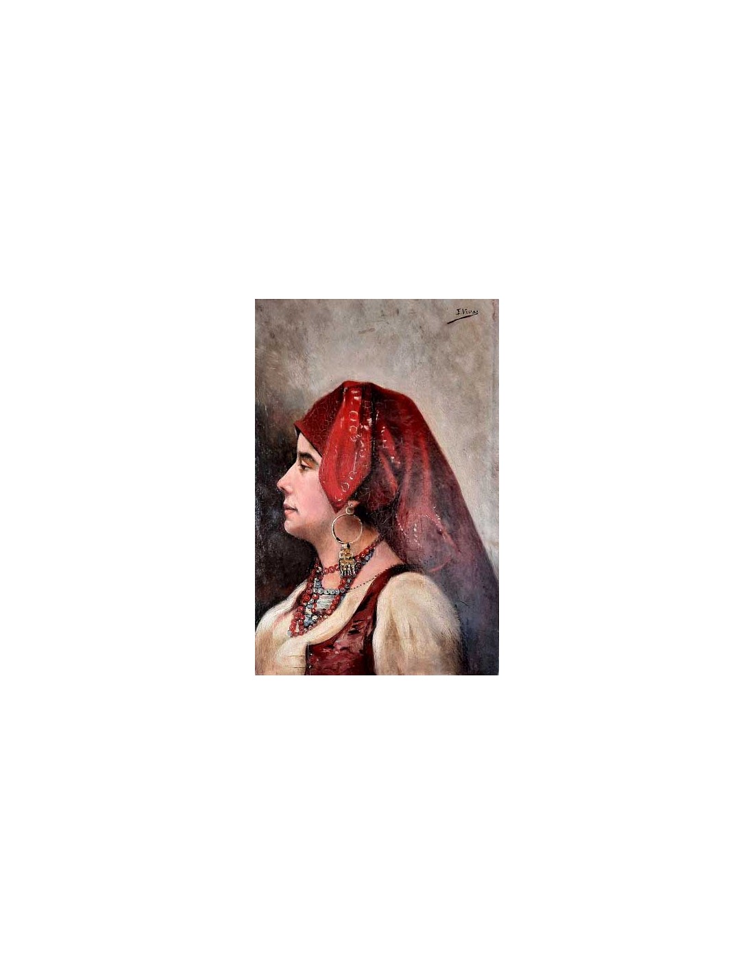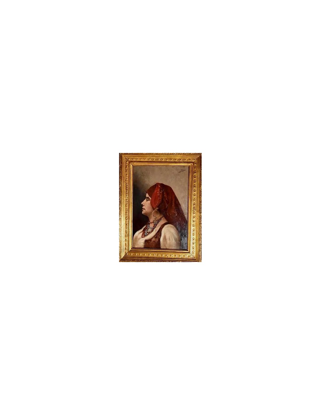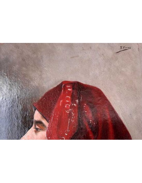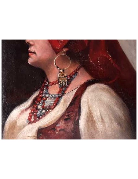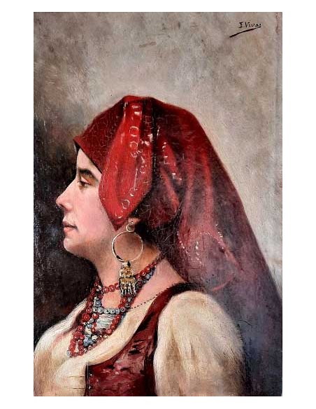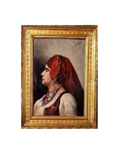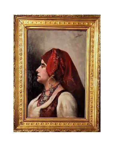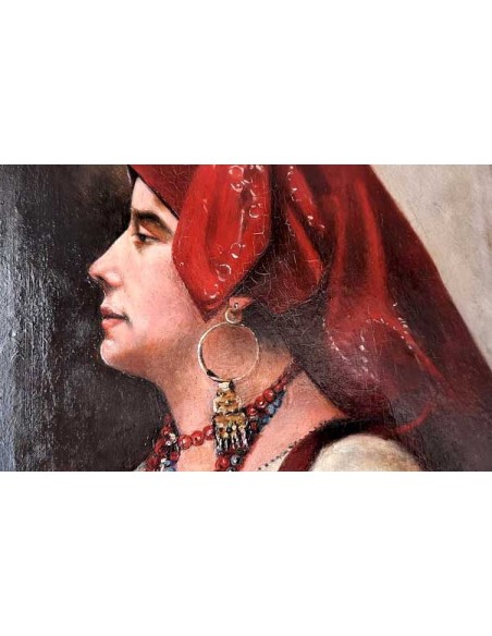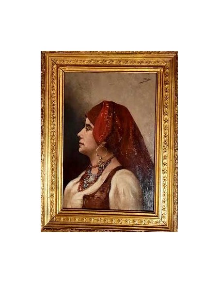 Retrato de una gitana sobre tabla, sobre su suporte antiguo, en perfectas condiciones.