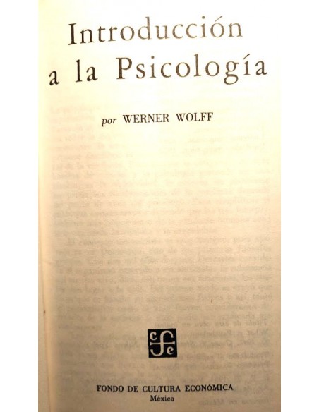 INTRODUCCIÓN A LA PSICOLOGÍA . breviarios - POR WERNER WOLFF