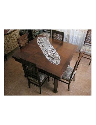 Mesa de comedor inglesa del S.XVIII, extensible, con los tradicionales trabazones o puentes, que unen las patas entre si al centro de la mesa. Madera de caoba Las patas son rectas terminadas en tacos o zopos. Para disponer de una mayor superfice de tablero y dar cabida a mayor número de comensales dispone de dos suplementos extensibles en los laterales de 54x110 cm. cada uno. Medidas: H82x120x110 cm. de la mesa cerrada, y con los suplementos extensibles H82x228x110 cm. Mesa elegante y cómoda.