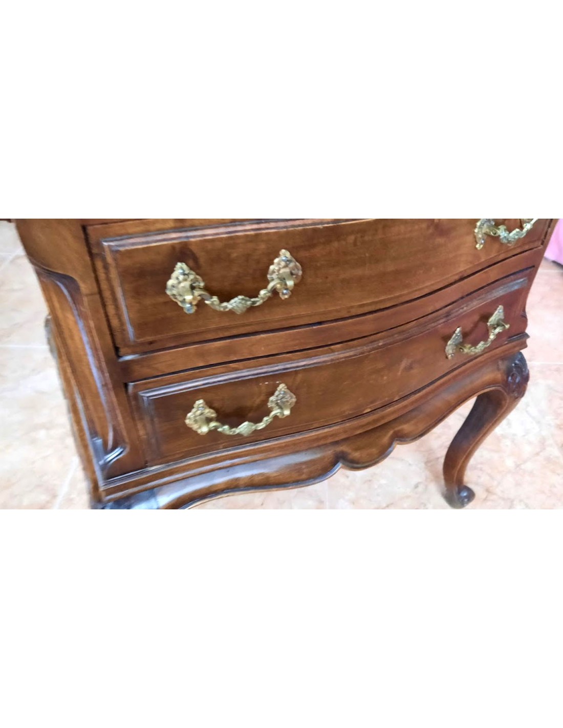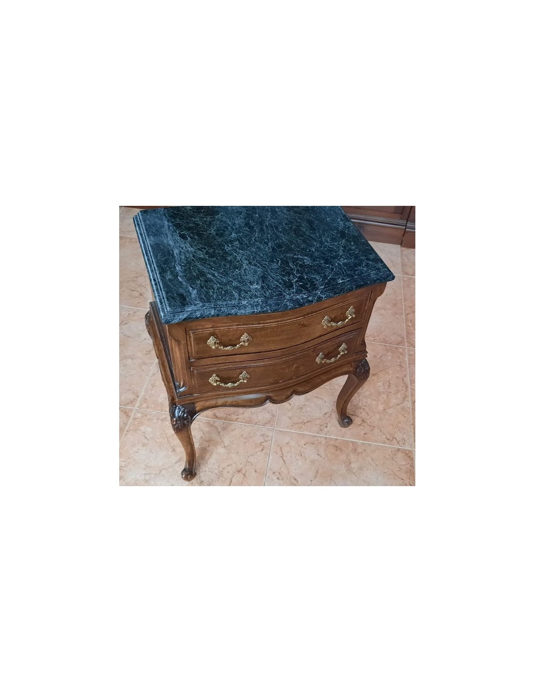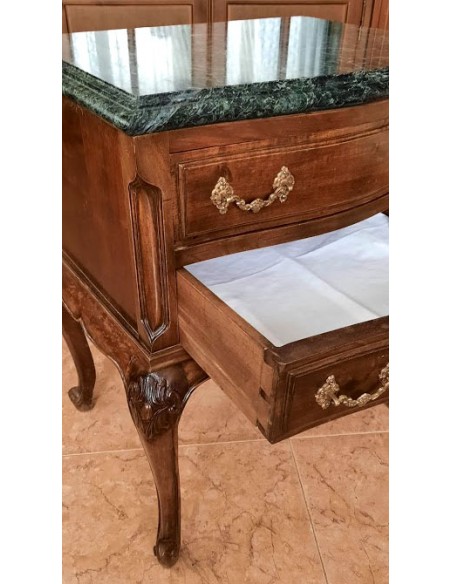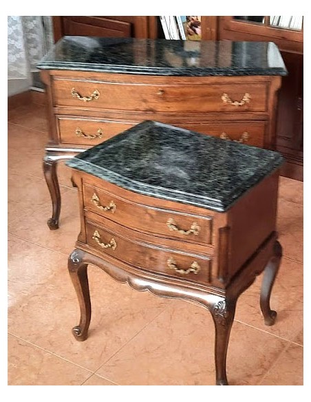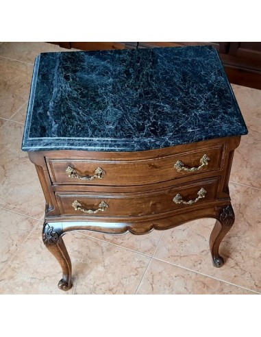 Madera de nogal. Dos cajones con tiradores de bronce, originales.