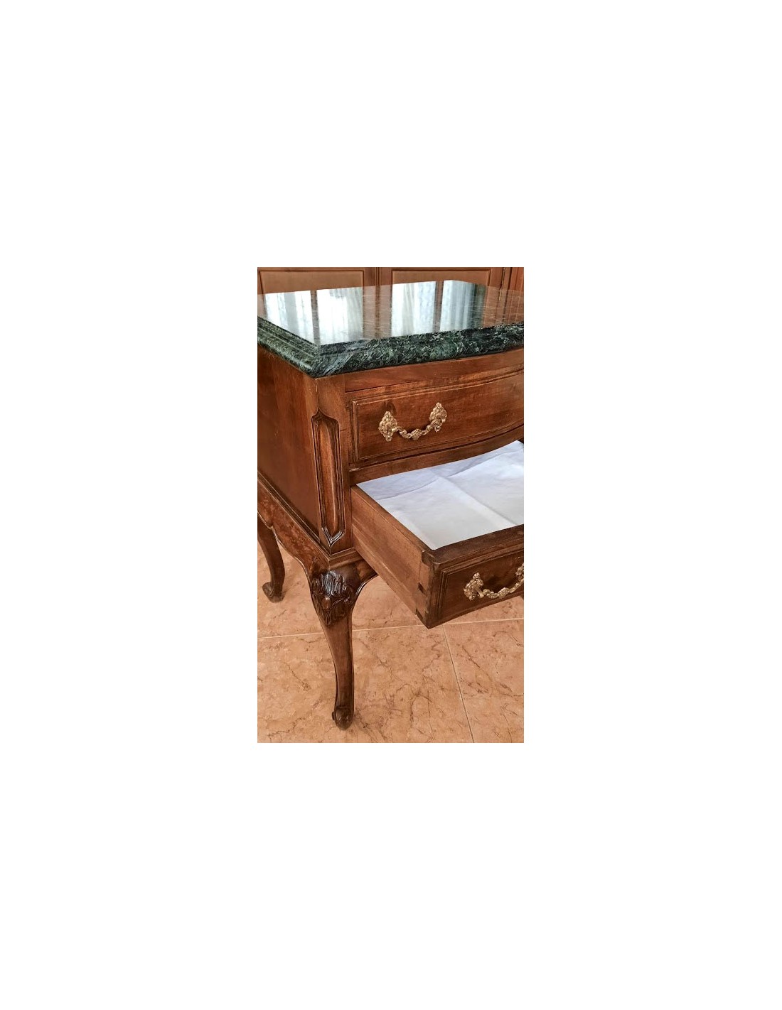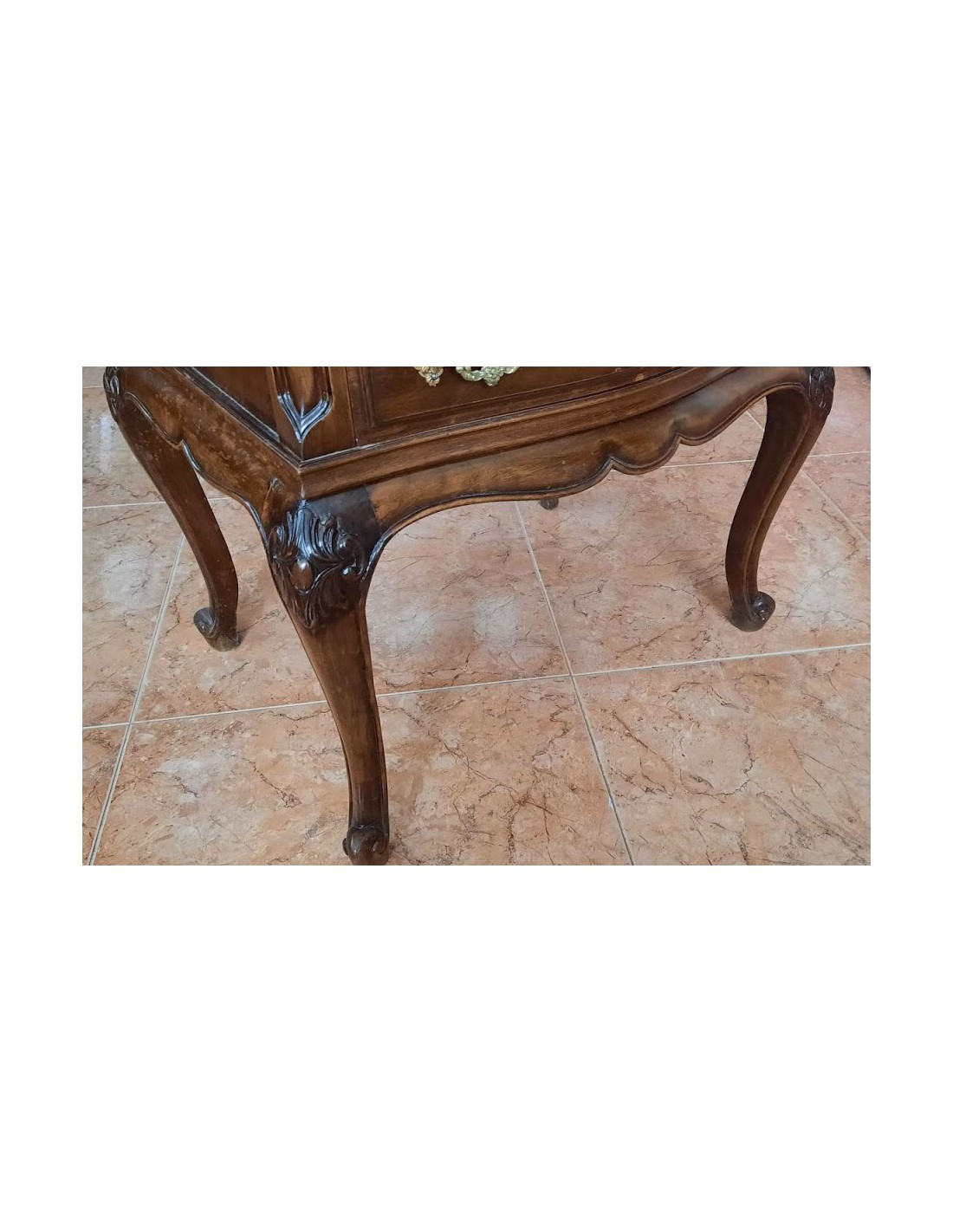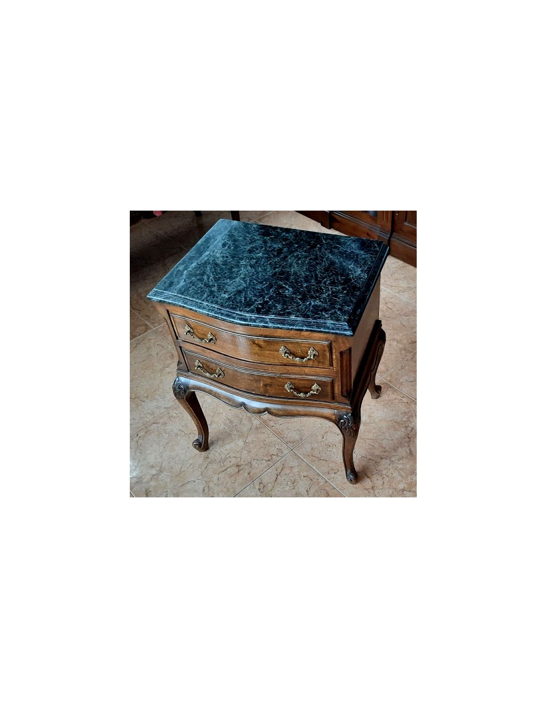 Madera de nogal. Dos cajones con tiradores de bronce, originales.