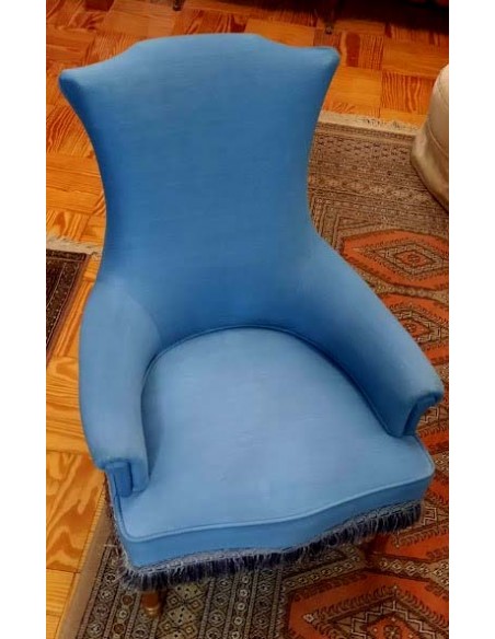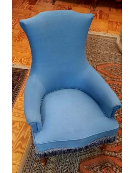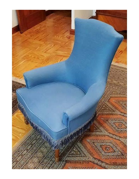 SILLÓN ART NOUVEAU TAPIZADO EN AZUL
