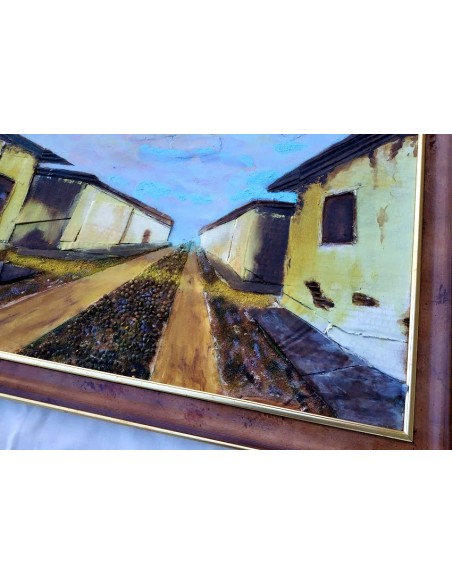 PUEBLO COLONIAL COLLAGE M.SOS ÓLEO