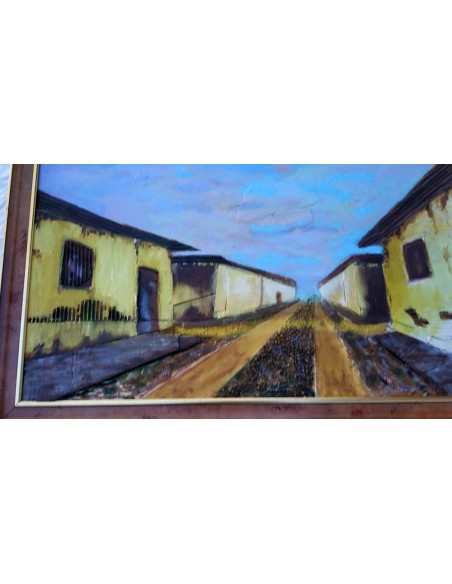 PUEBLO COLONIAL óleo sobre TABLA y CARTONES