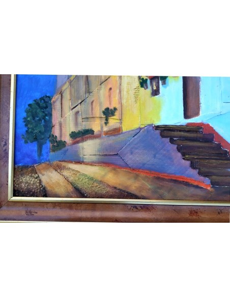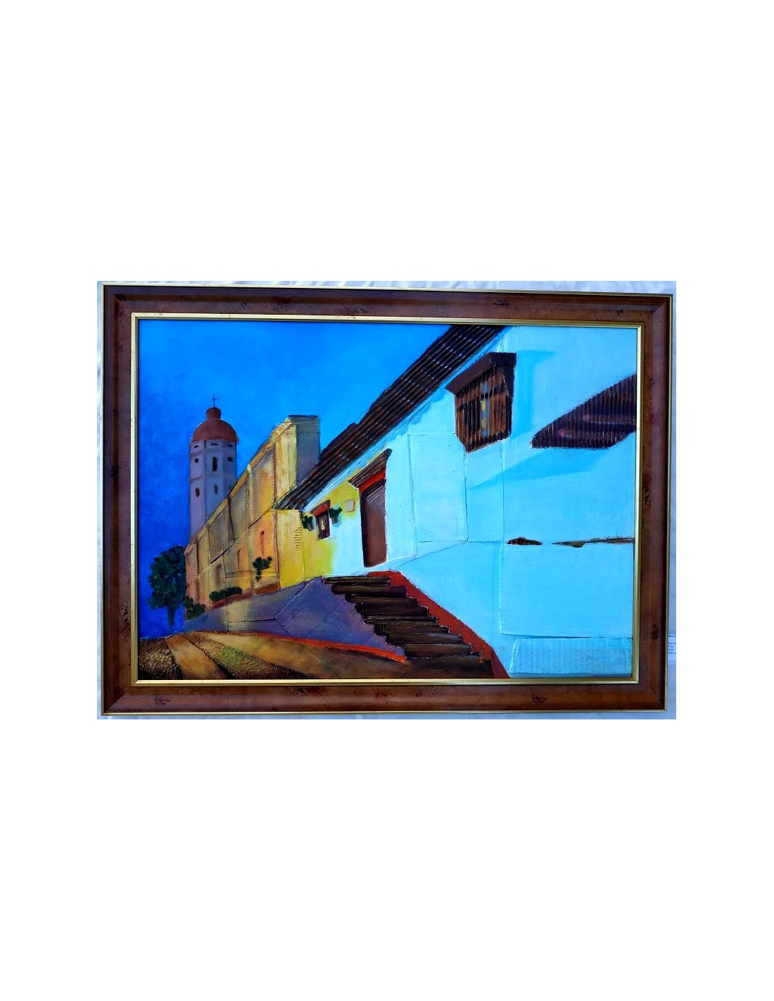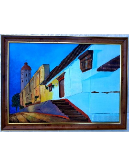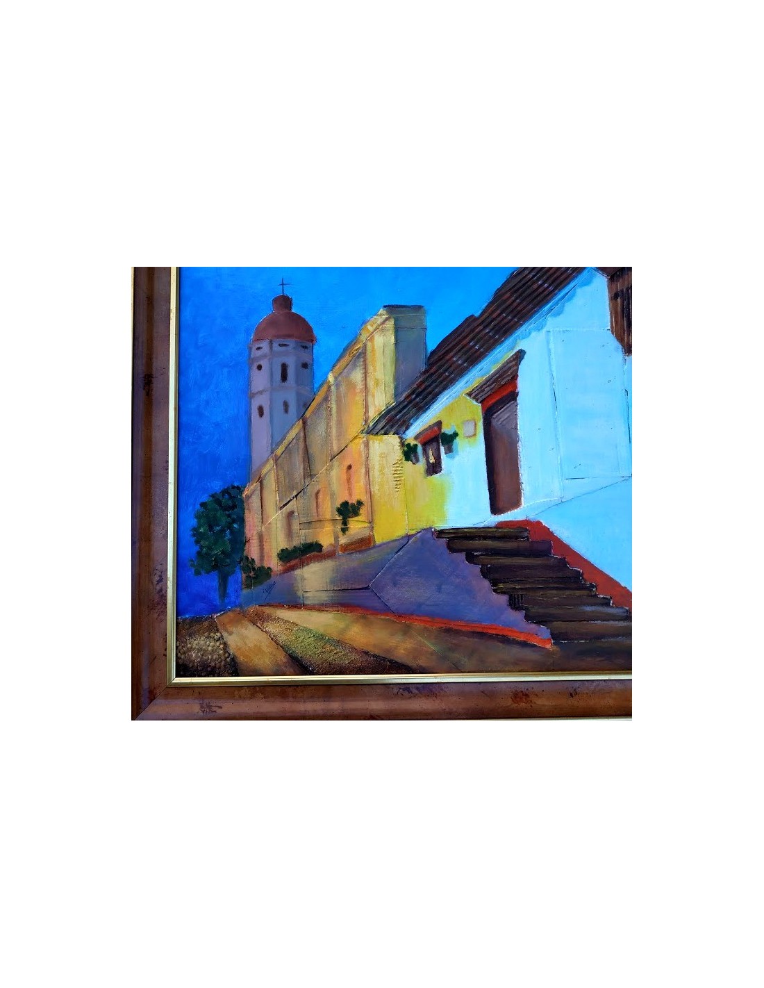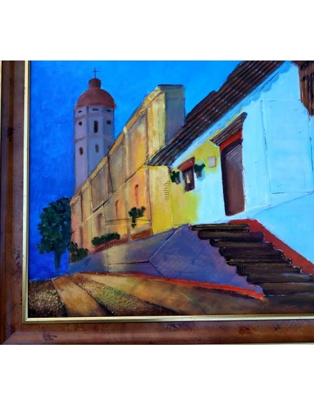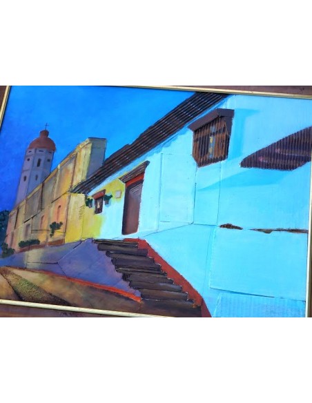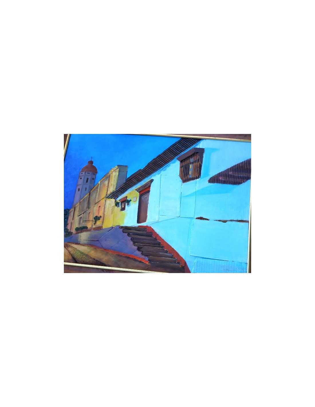 IGLESIA EN EL PUEBLO COLONIAL COLLAGE M. SOS ÓLEO