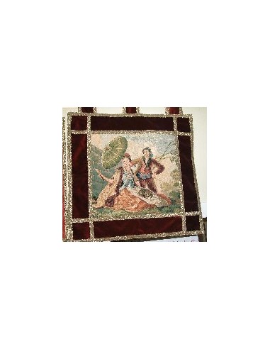 Escena goyesca, "La Sombrilla", de Goya, pintor del S.XVIII. Tapiz forrado y con asas para colgar. ORIGINAL PARA DECORAR. Tipo de tejido: GOBELIN. Reconocimiento mundial de Brussel Gobelin Center, con el certificado de autenticidad de Textilux Center, el arte textil. Con el fin de preservar el valor artistico de este tapiz, garantizamos con este certificado la excelente reproducción del trabajo original. Medidas: 70x65 cm.