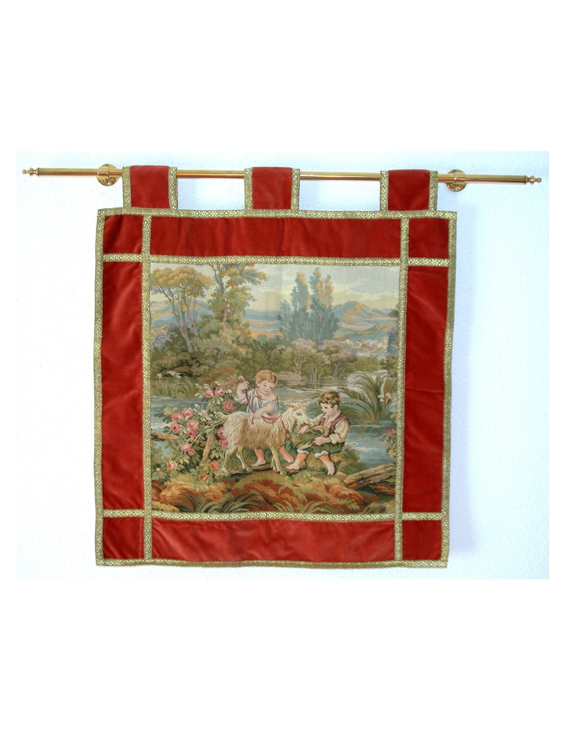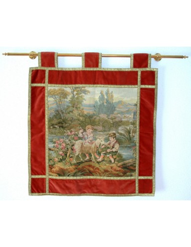 Escena pastoril niños con ovejas de F.Boucher S.XVIII. Tapíz forrado, con asas para colgar. Tipo de tejido: GOBELIN. Reconocimiento mundial de Brussel Gobelin Center, con el certificado de autenticidad de Textilux Center, el arte textil.